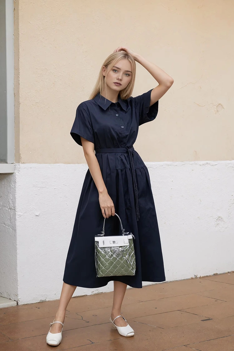 3.Las opciones personalizables admiten ajustes personalizados en mezclas de telas, largo del vestido, detalles del cinturón y paletas de colores, con disponibilidad mayorista para pedidos al por mayor.