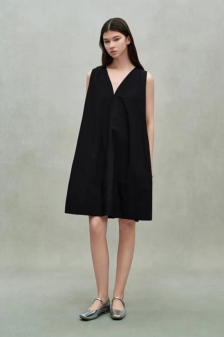Para satisfacer las demandas principales de las compras al por mayor, el vestido casual de algodón con cuello en V para mujer adopta un diseño de ajuste amigable con todo incluido. Ofrece una excelente inclusión para varios tipos de cuerpo y las personas que pesan entre 80 y 140 libras pueden manejarlo fácilmente. Esto amplía significativamente el rango de audiencia de ventas después de la compra y aumenta la tasa de devolución de compras. El diseño de escote en V profundo es simple y elegante, lo que no solo puede refinar las líneas de los hombros y el cuello y alargar la proporción del cuello, sino que tampoco será demasiado revelador. Logra un equilibrio entre elegancia y desenfado. El corte general es moderadamente holgado, cubriendo con precisión el exceso de grasa en cintura, caderas, etc., y minimizando las deficiencias de la figura. No es necesario seleccionar deliberadamente el tamaño, lo que reduce la dificultad de adaptación del tamaño en la venta de terminales. El diseño sin mangas es refrescante y elegante, adecuado para el verano. Al mismo tiempo, proporciona un espacio más flexible para vestir y combinar a los compradores, satisfaciendo las necesidades de múltiples escenarios de ventas.