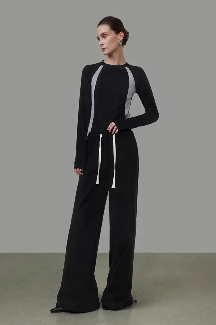 Adoptamos el estilo de pantalón ancho en forma de micro A y el corte tridimensional 3D. Después de múltiples ajustes de detalles, la forma se adapta mejor al tipo de cuerpo asiático. El diseño superior de cintura alta y cintura ancha eleva efectivamente la cintura, combinado con el cordón caído natural, es simple y ordenado sin ser voluminoso. La forma de los pantalones tiene un fuerte efecto en la cintura, el abdomen, las caderas y las piernas, puede adaptarse a varios tipos de cuerpo y puede presentar fácilmente una proporción esbelta y un temperamento elegante.