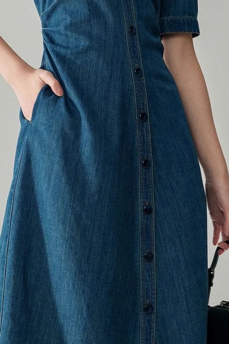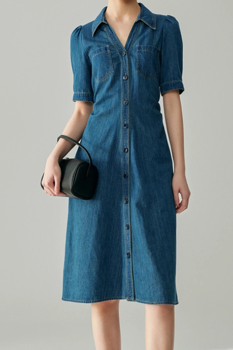 Vestido elegante de algodón vaquero para mujer