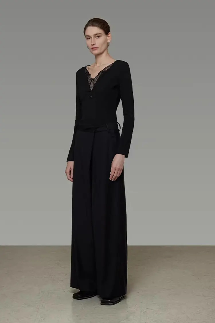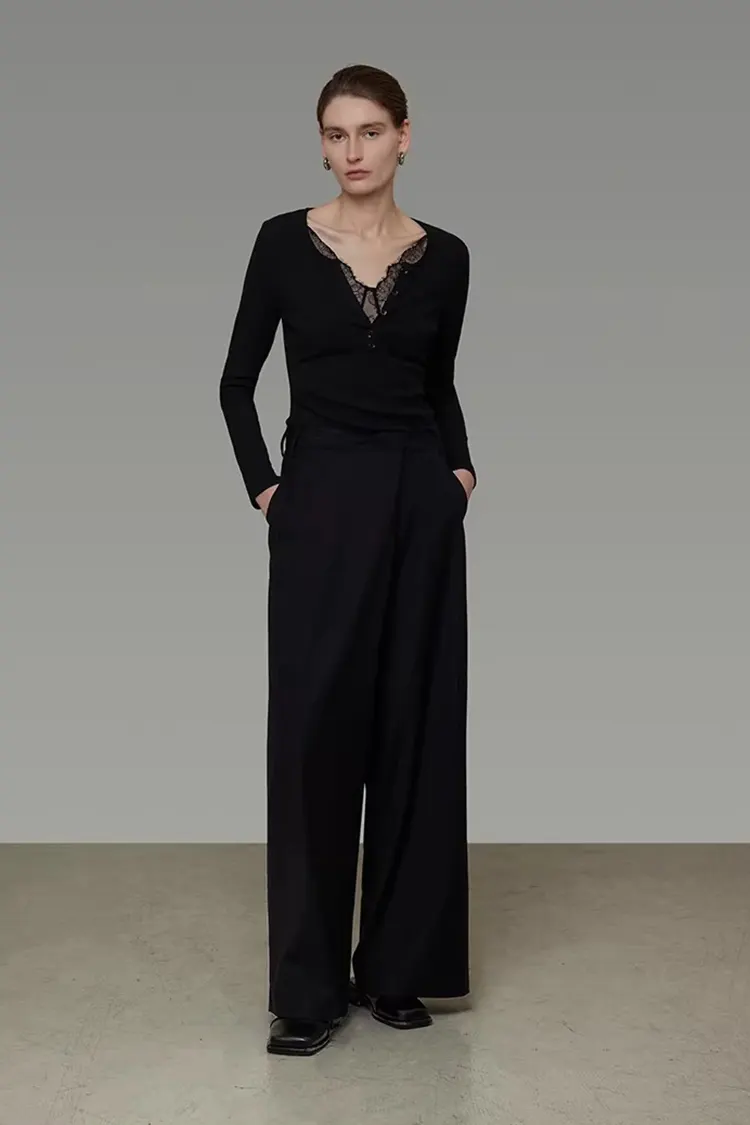 El color principal del suéter ajustado con cuello en V de encaje para mujer es el negro clásico. Está de moda, es versátil y atemporal, y tiene un fuerte efecto adelgazante visual, lo que le permite presentar sin esfuerzo una figura limpia y esbelta. El negro no depende del tono de piel ni del estilo, y tiene una aceptación terminal extremadamente alta. Al mismo tiempo, admite la personalización a todo color y se puede ajustar de manera flexible según los requisitos de la marca y las preferencias del mercado.