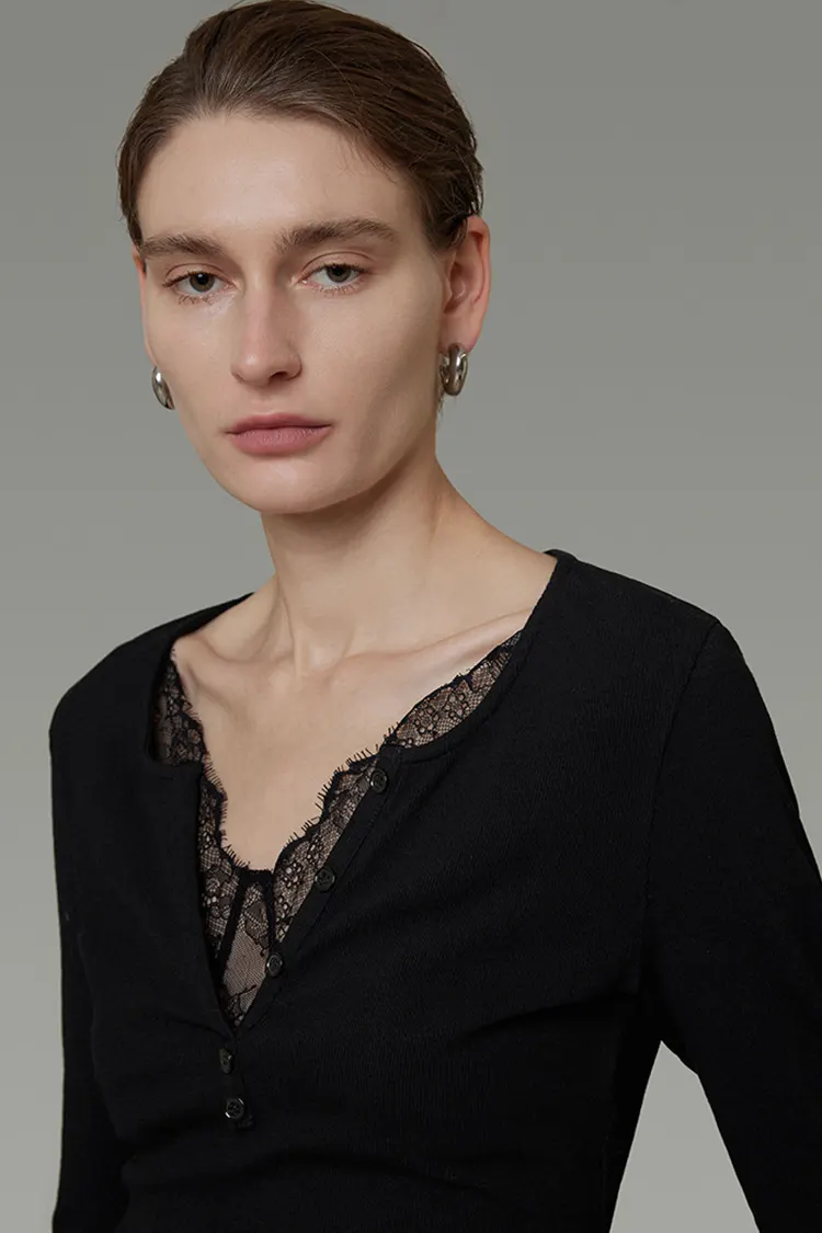 Etiquetas calientes: Suéter delgado con cuello en V de encaje para mujer, proveedor, venta al por mayor, personalizado, fabricante